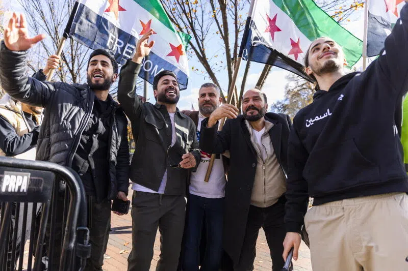 Supporters of Syrian President Ahmed al-Sharaa gathering outside the White House after his meeting with US President Donald Trump on Nov 10.
