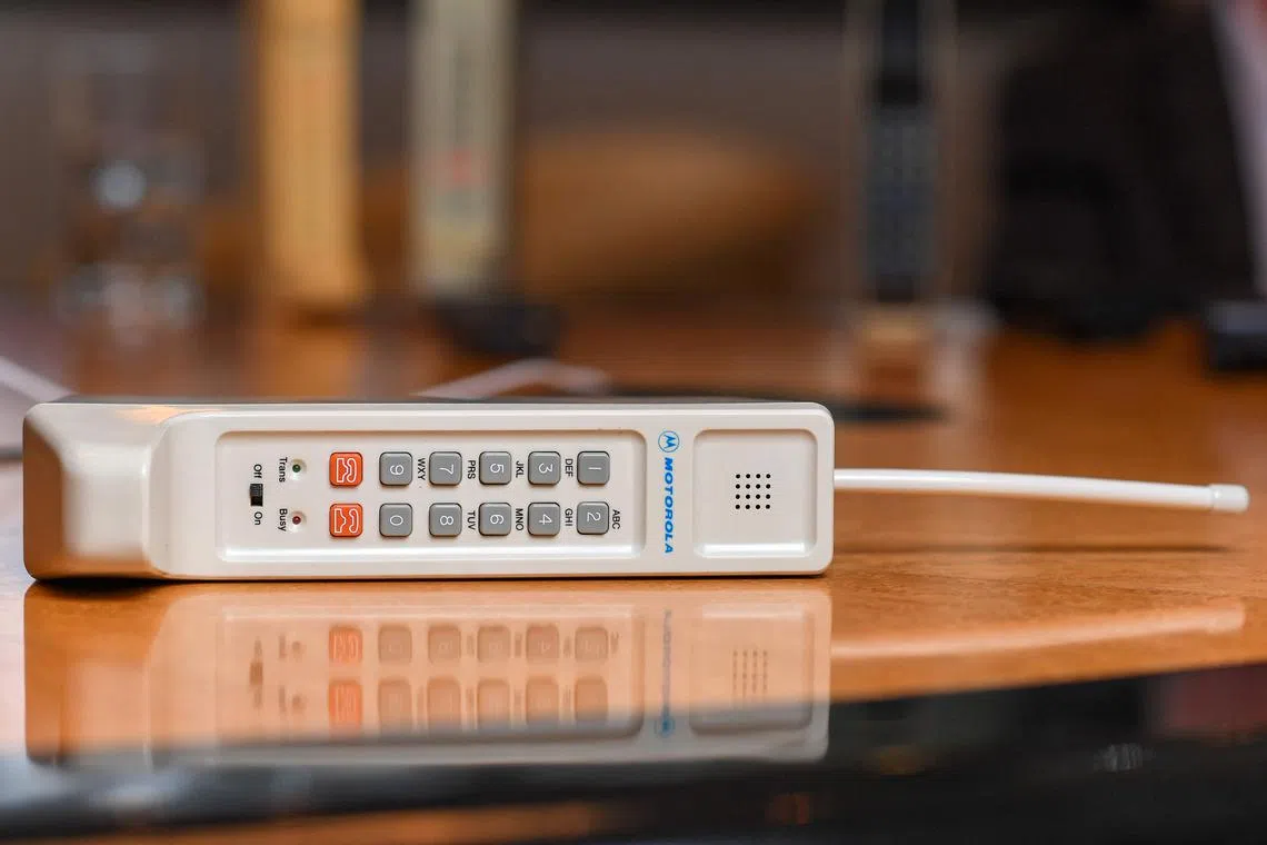 A contemporary copy of the original cellphone that engineer Martin Cooper used to make the first mobile call on April 3, 1973.
