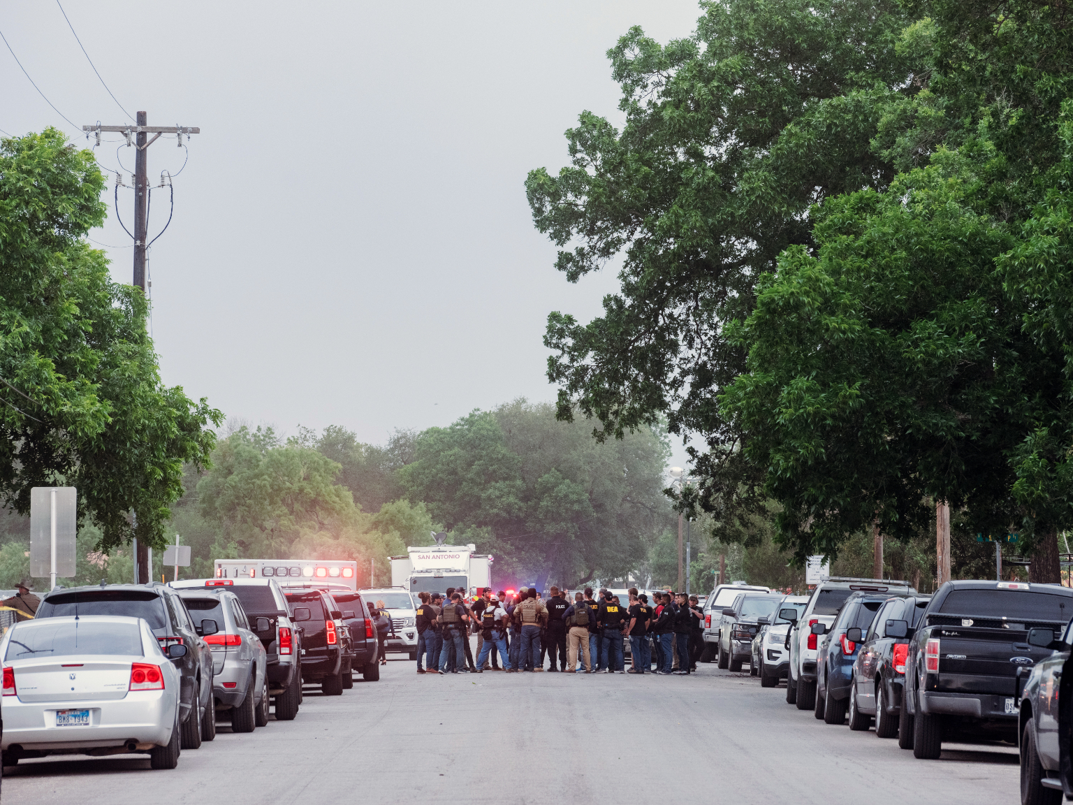 Law enforcement officials outside Robb Elementary School in Uvalde, Texas, following the mass shooting on May 24, 2022.