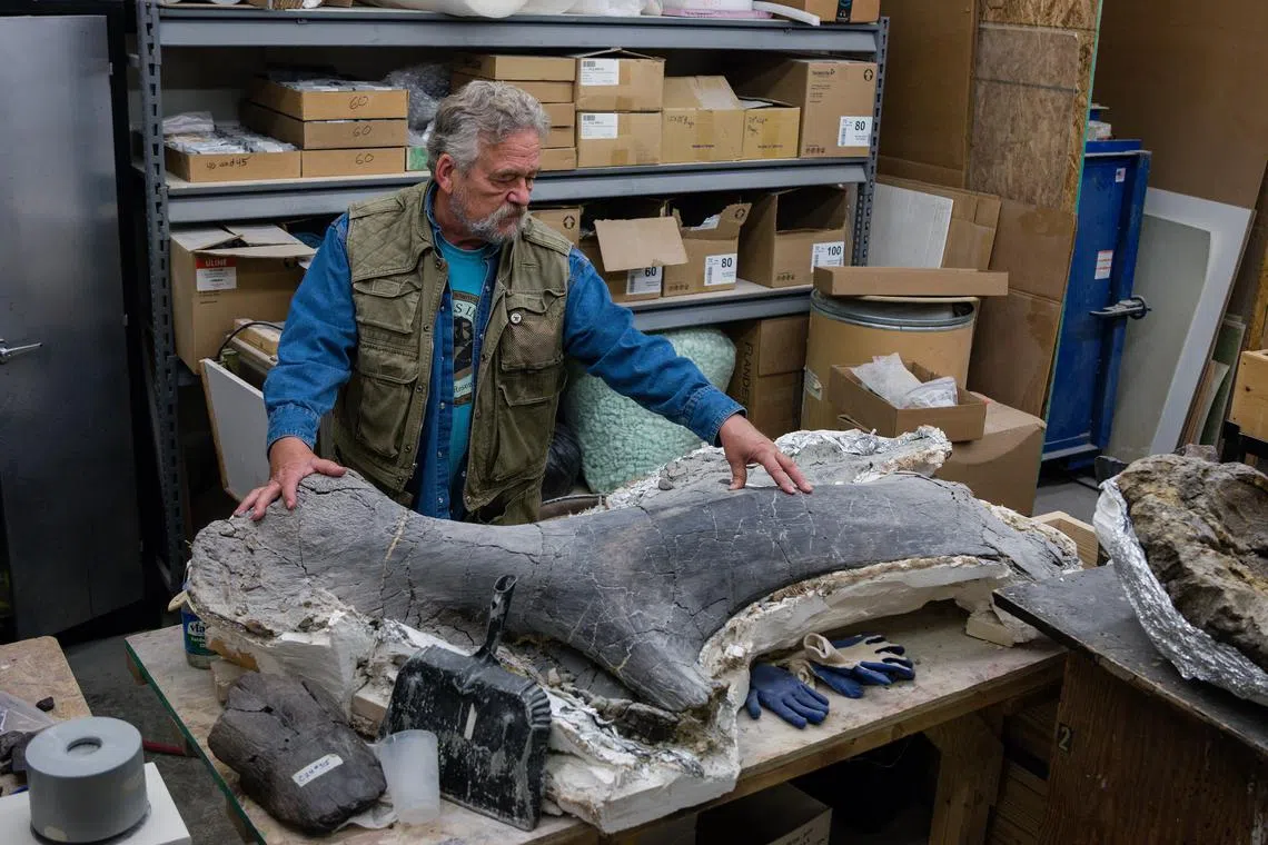 HULETT, Wyoming – Crouching over a snow-dusted quarry that moonlights as a fossil hunting ground, Mr Peter Larson pointed to a weathered four-inch slab peeking out from a blanket of white. A commonplace rock to the untrained eye, but an obvious dinosaur bone to Larson.
