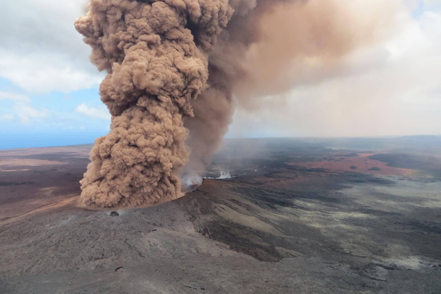 A plume of ash rising from a crater on Mount Kilauea in Hawaii after a magnitude 6.9 earthquake struck the area on May 4, 2018.