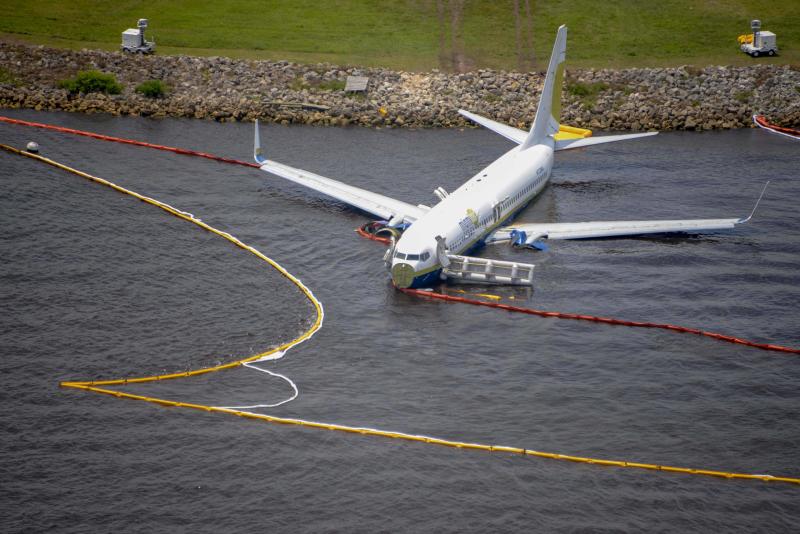 The plane carrying 143 people slid off the runway after a hard landing last Saturday at a naval air station in Jacksonville during a lightning storm.