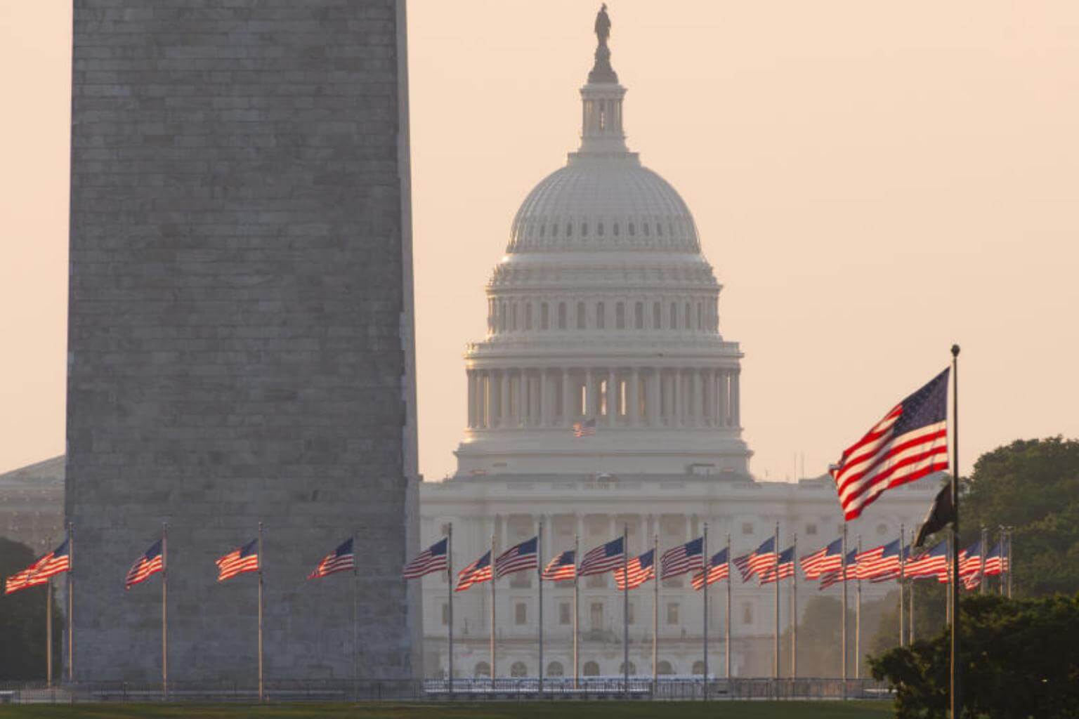 The US Capitol and Washington Monument on the National Mall are seen at sunrise in Washington, DC, on June 30, 2017.