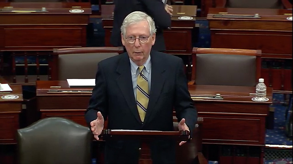 Mitch McConnell addresses the Senate following the impeachment acquittal of former US president Donald Trump.