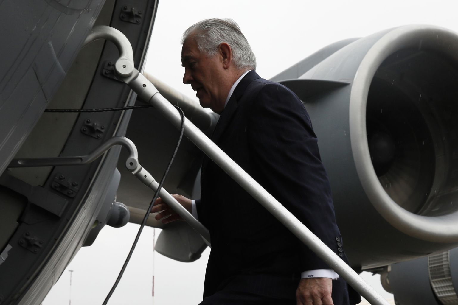 Tillerson boarding his plane to depart Nairobi, on March 9, 2018.