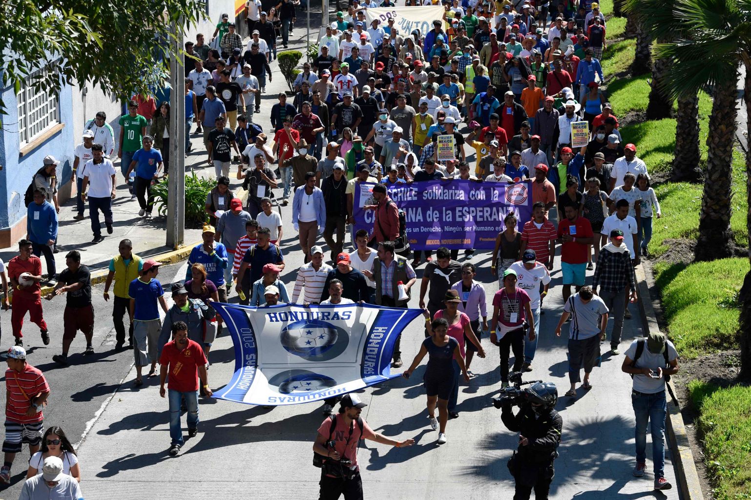 A group of Central American migrants heading in a caravan to the US.