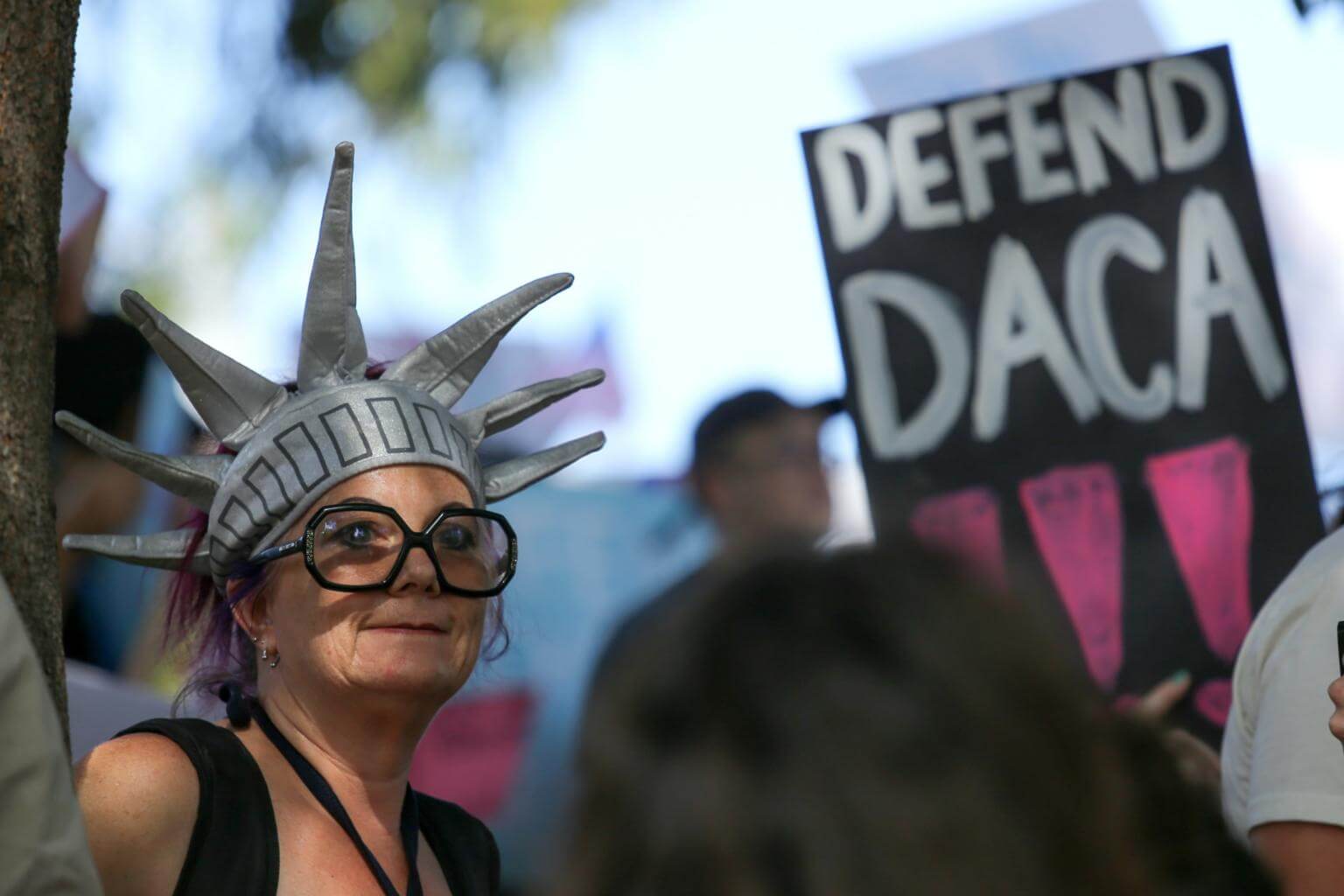 Protesters demonstrating in support of the Deferred Action for Childhood Arrivals (DACA) programme in Los Angeles on Sept 10, 2017.