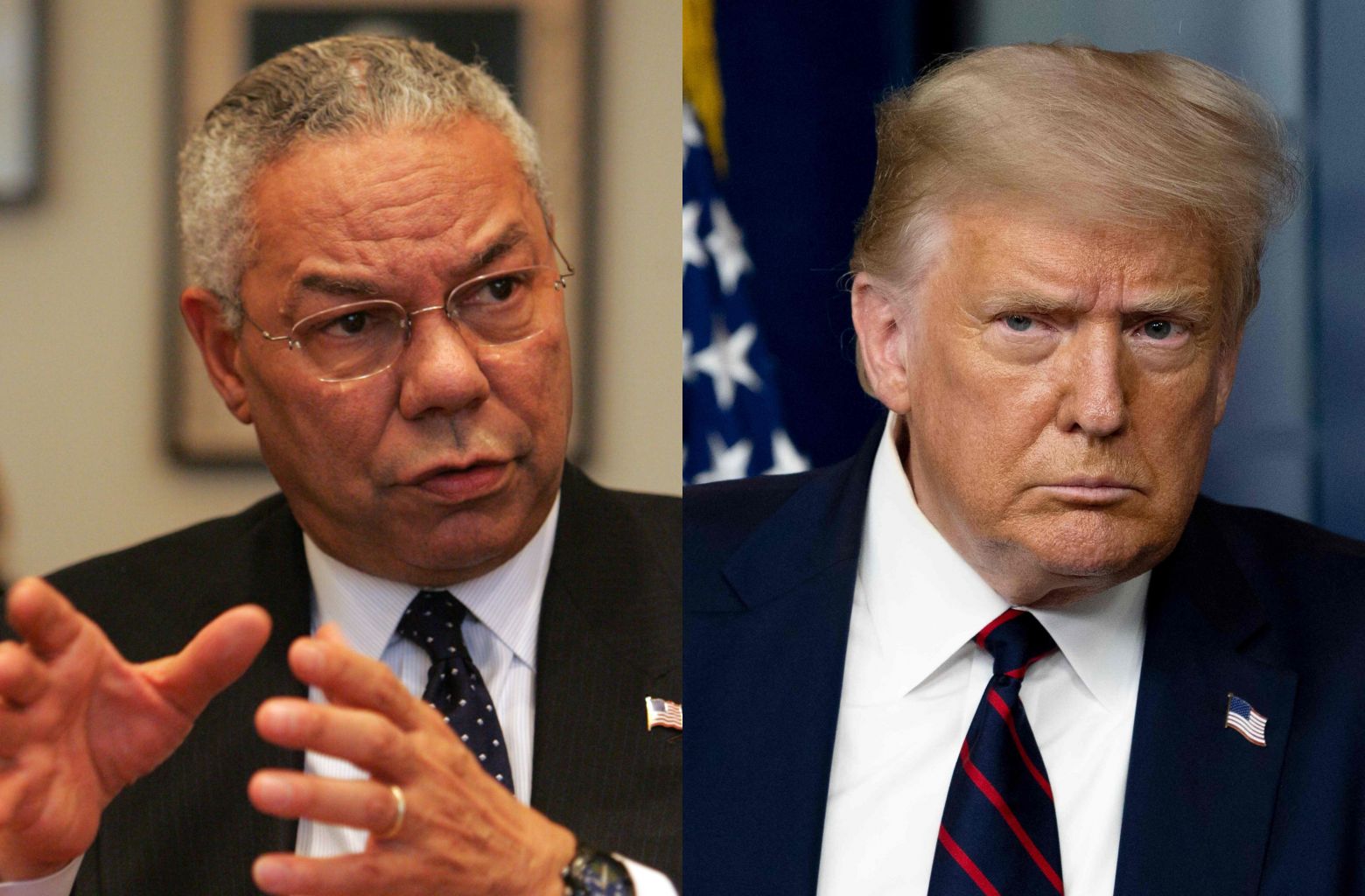Colin Powell (left), who died aged 84 from Covid-19 complications, was a frequent critic of former US president Donald Trump (right).