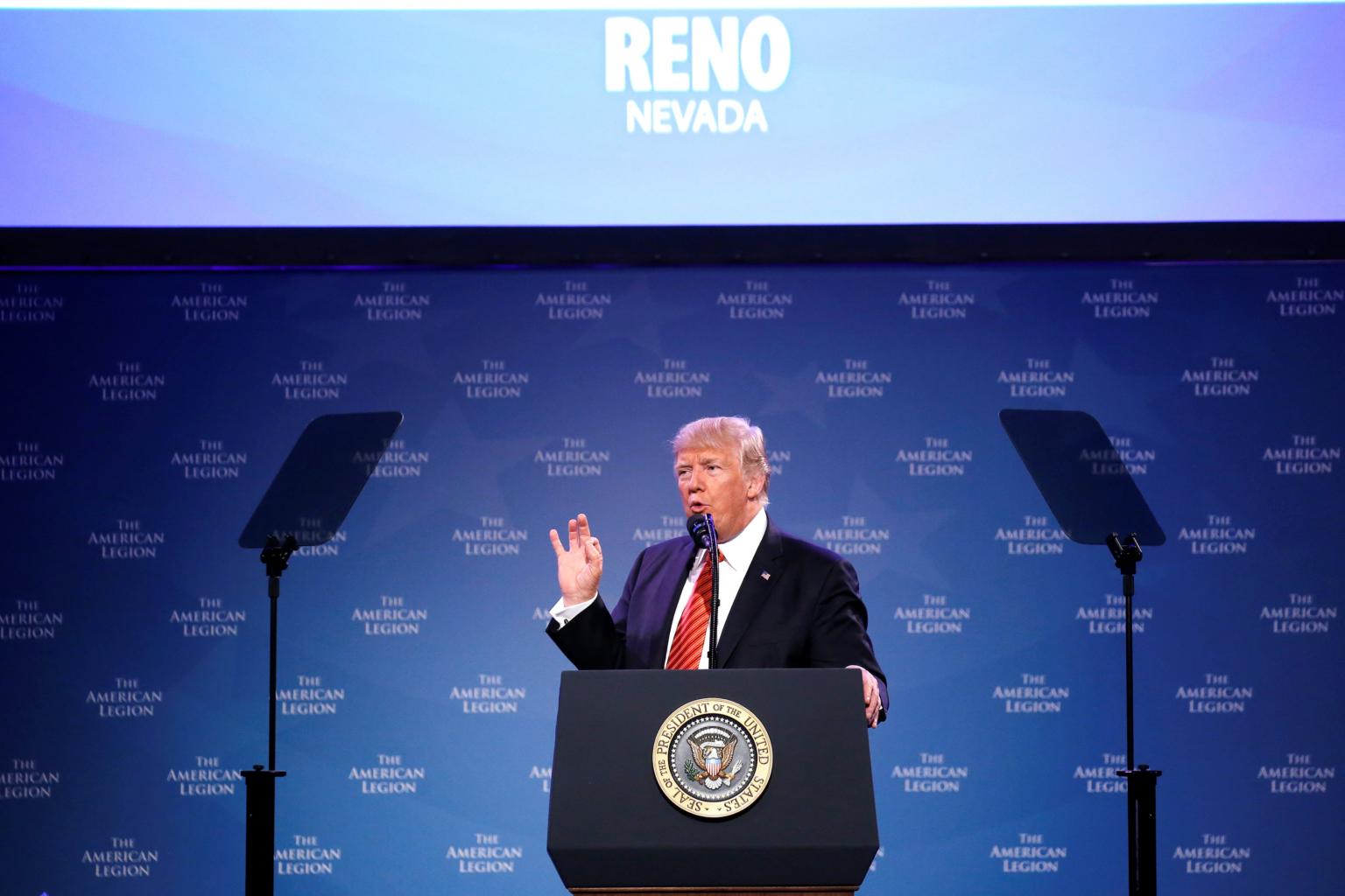 US President Donald Trump speaks to the National Convention of the American Legion in Reno, Nevada, US, on Aug 23, 2017.