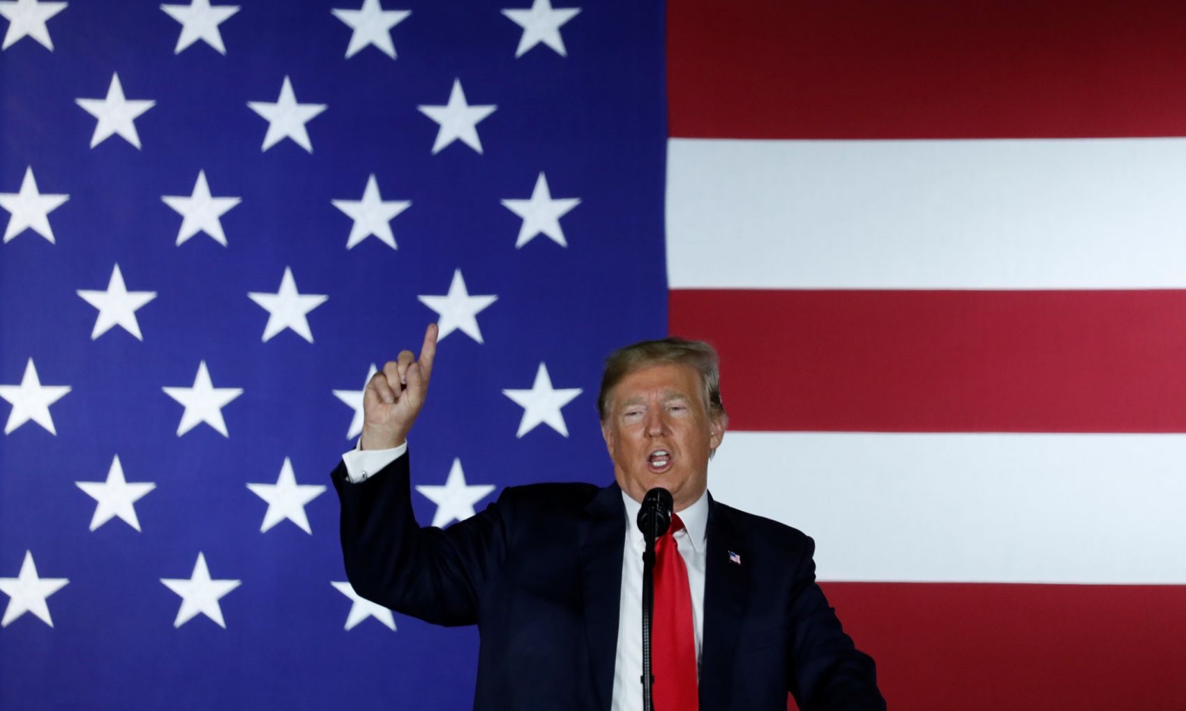 Trump speaking at a Republican Party fundraiser in Fargo, North Dakota.