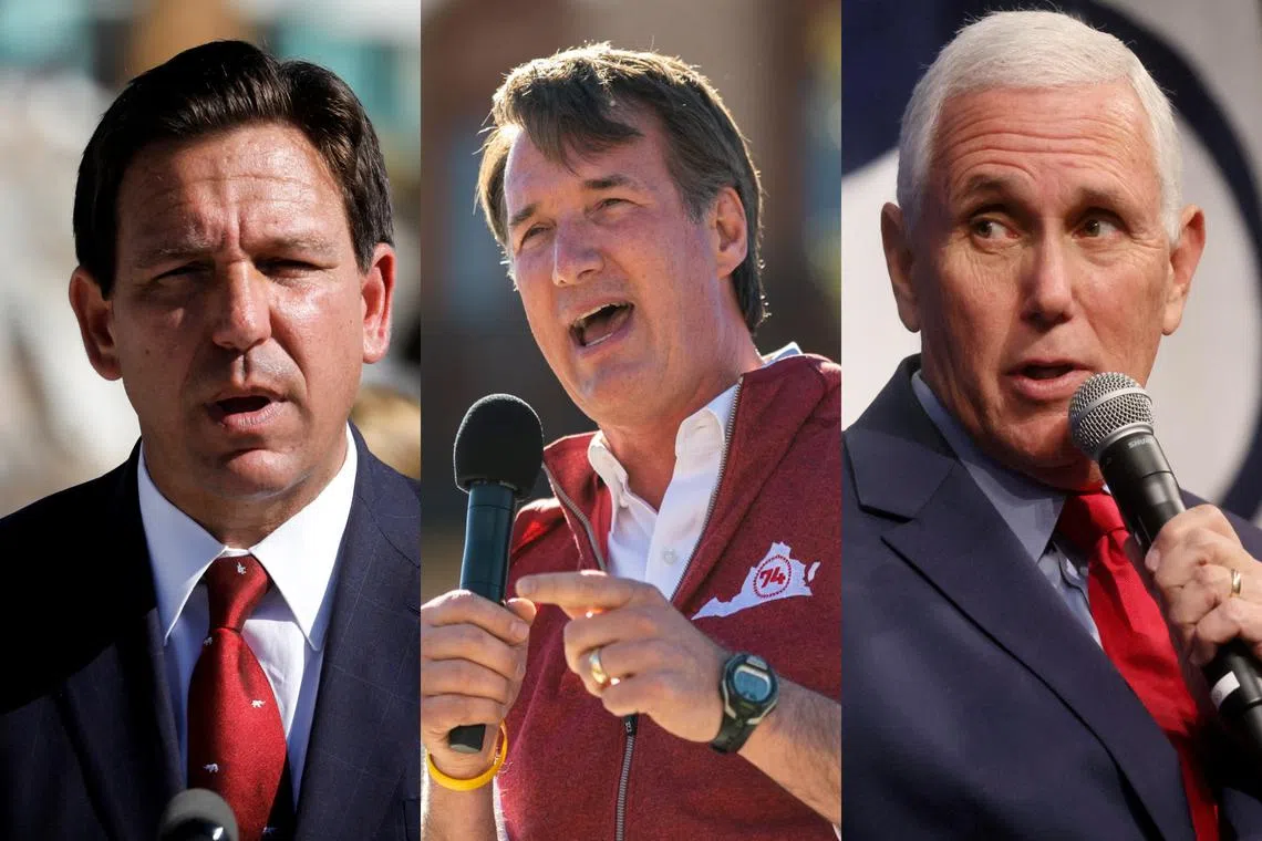 Republican contenders standing against Mr Trump could include (from left) Florida Governor Ron DeSantis, Virginia Governor Glenn Youngkin and former vice-president Mike Pence.