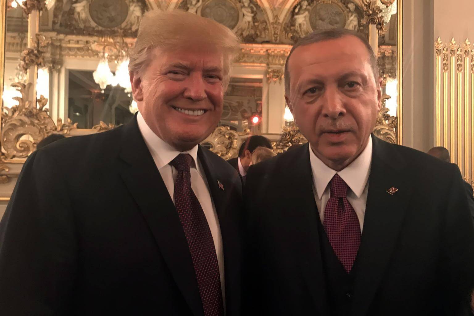 Turkish President Recep Tayyip Erdogan and US President Donald Trump at the official dinner on the eve of the international ceremony for the Centenary of the WWI Armistice of Nov 11,1918 at the Orsay museum in Paris, France, on Nov 11, 2018.
