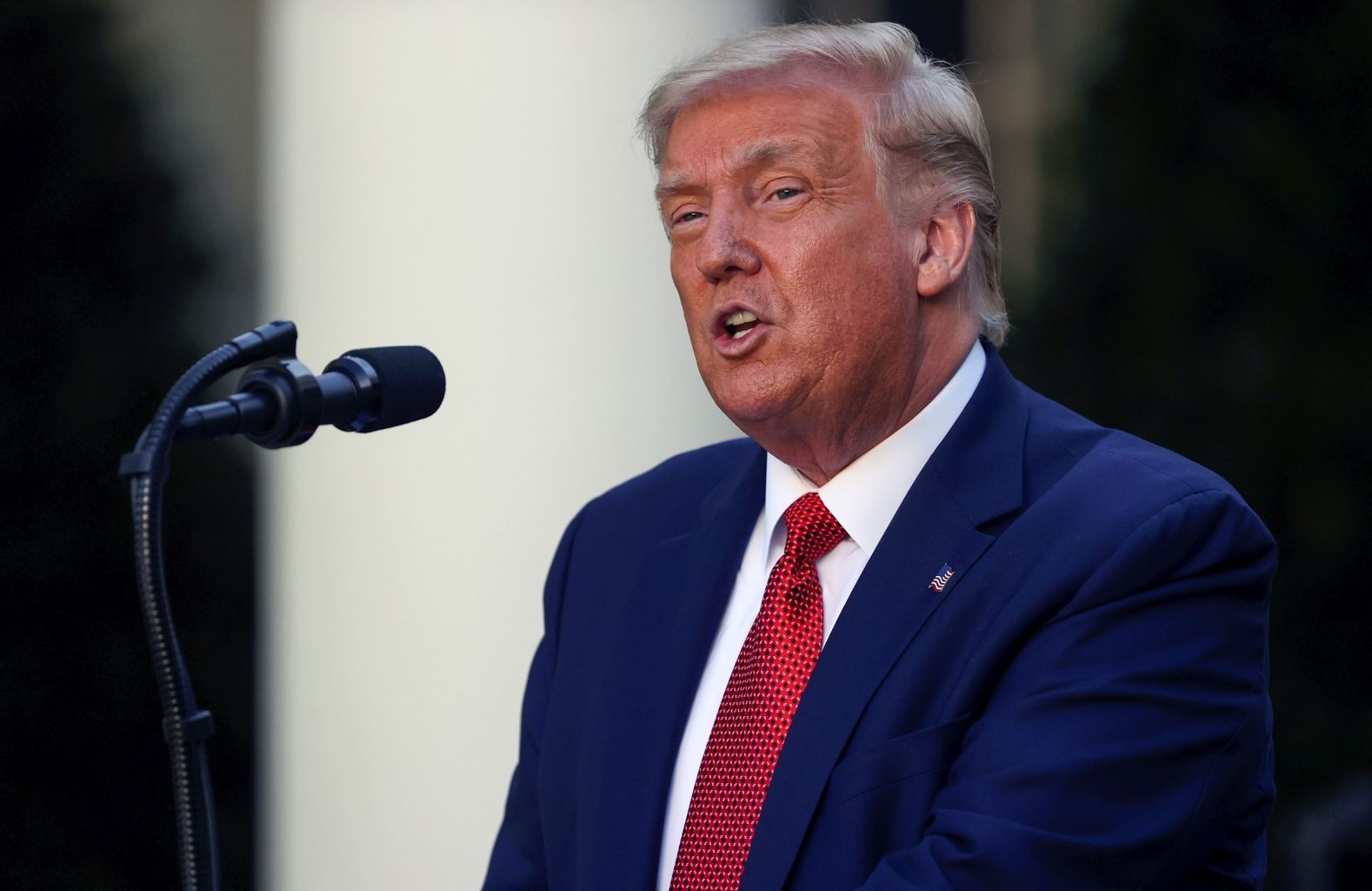 Trump speaks during a news conference in the White House Rose Garden on July 14, 2020.