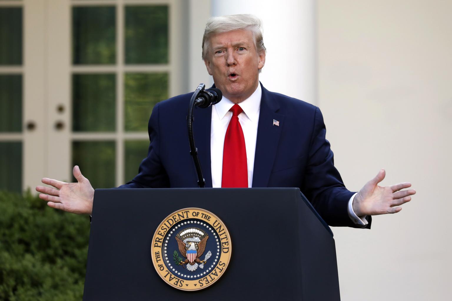 US President Donald Trump speaks at a news conference at the White House in Washington on April 27, 2020.