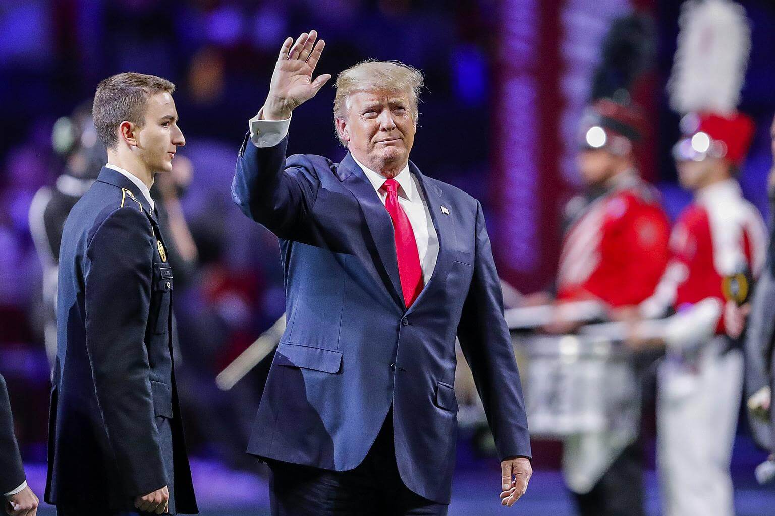 US President Donald Trump waves as he attends the College Football Playoff National Championship game between the University of Alabama and the University of Georgia, on Jan 8.