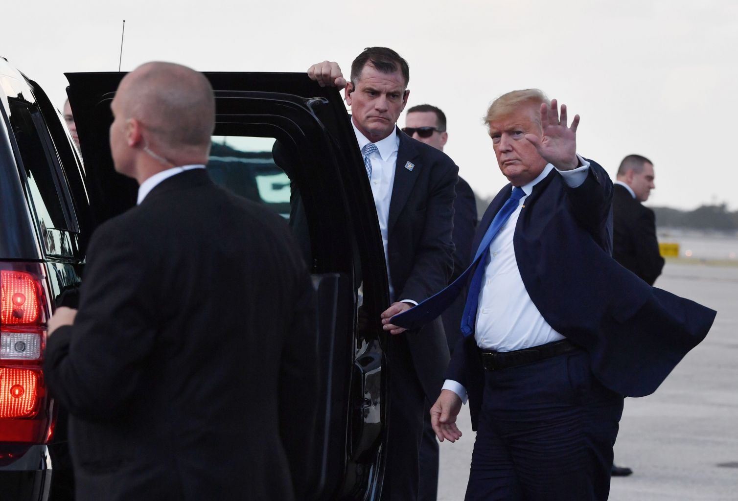 US President Donald Trump waves before departing Palm Beach International Airport in Florida Jan 17, 2020.