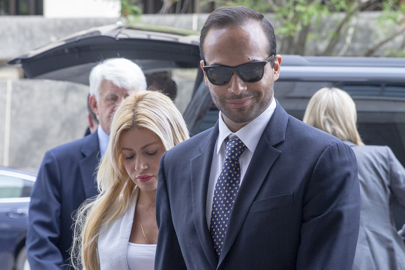 Mr George Papadopoulos, seen here with his wife Simona in 2018, was among those pardoned. An adviser to the 2016 Trump presidential campaign, he pleaded guilty in 2017 to making false statements to federal officials.