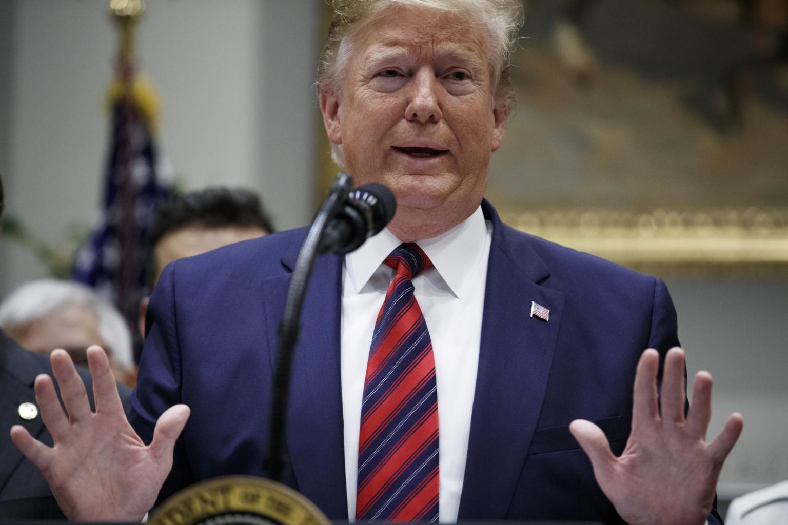 US President Donald Trump responds to a question from the news media following his remarks on ending surprise medical billing in the Roosevelt room of the White House in Washington, on May 9, 2019.