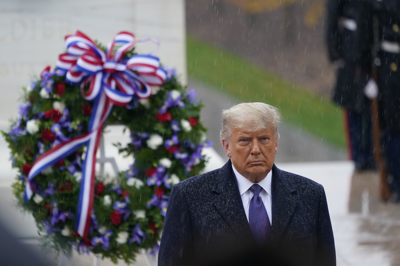 President Trump placed a memorial wreath at the Tomb of the Unknown Soldier at Arlington National Cemetery on Nov 11, 2020.