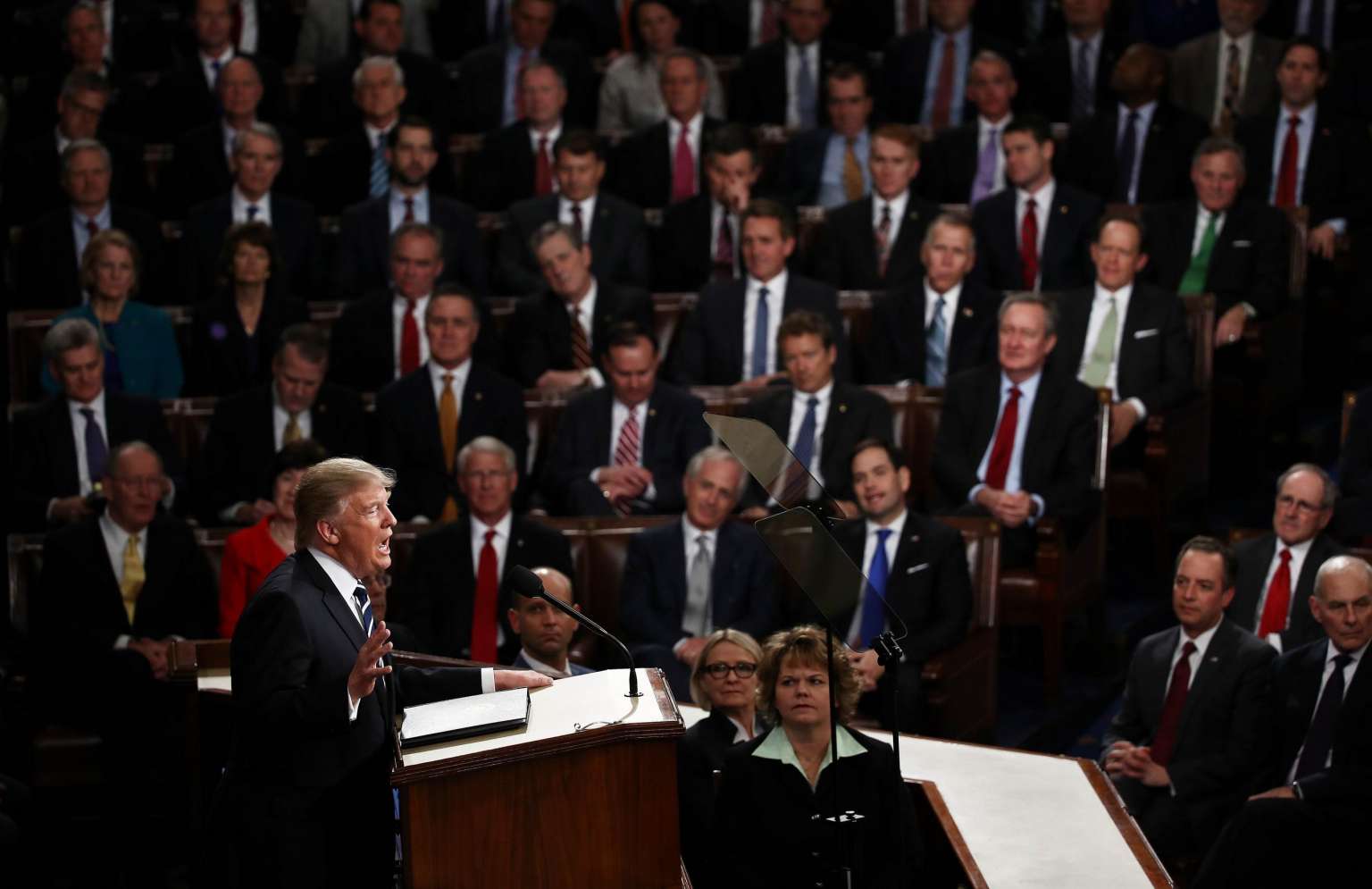 US President Donald Trump's first address to Congress in the House chamber of the US Capitol in Washington, DC, on February 28, 2017.