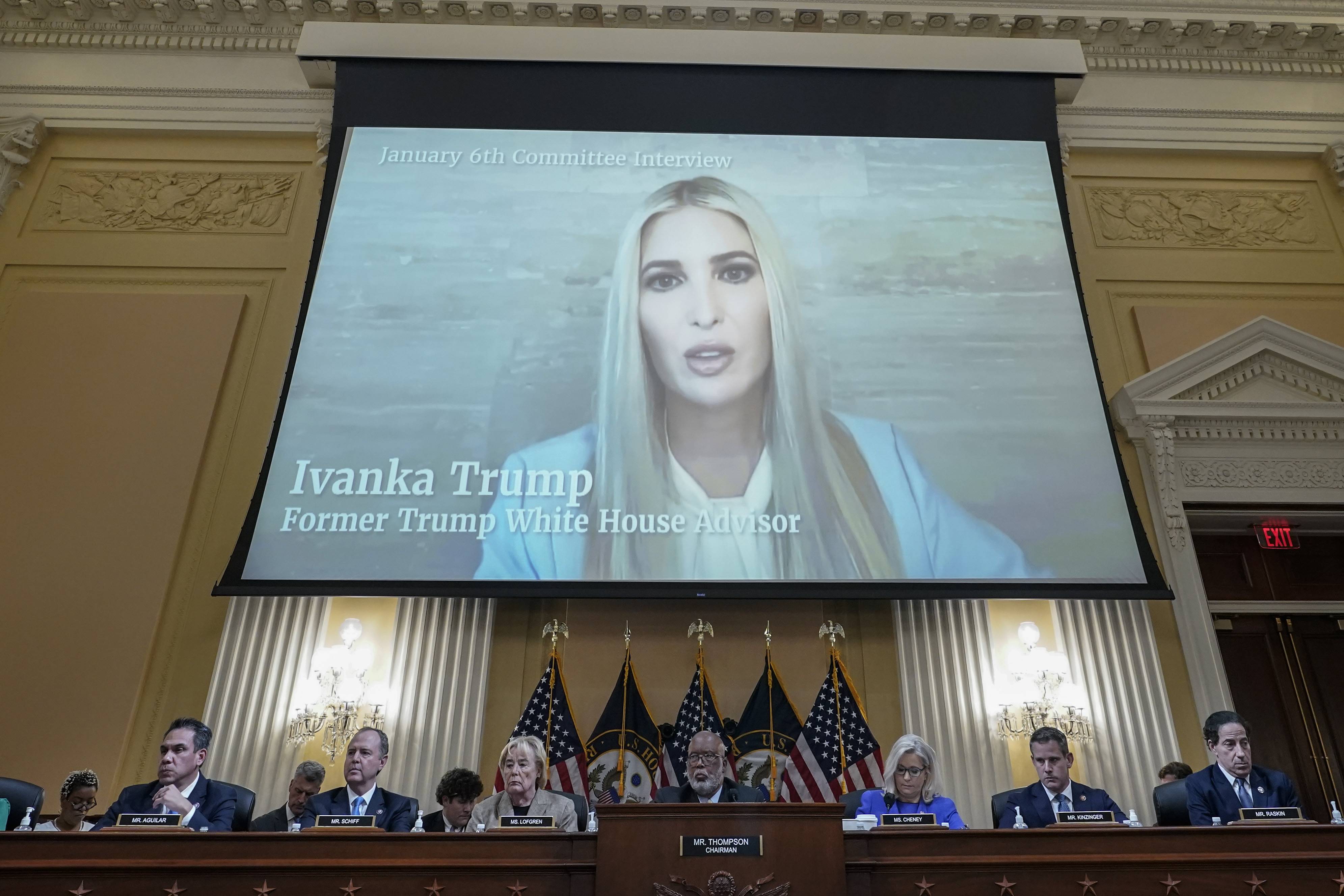 Ivanka Trump appears onscreen at a hearing into the 2021 US Capitol riot, in Washington, on June 9, 2022.