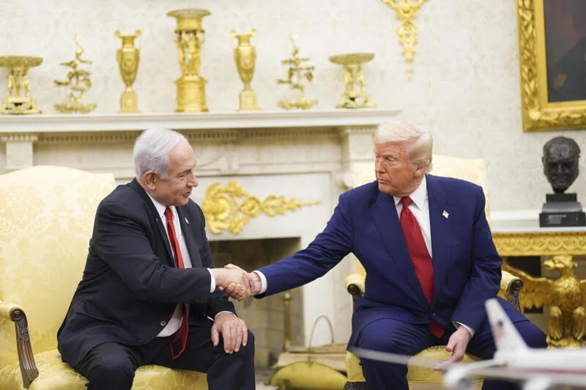 The Trump, Mr Netanyahu meeting capped a tumultuous day that saw US stocks swing wildly over a swirl of headlines related to Mr Trump’s trade policies, wiping out a 4 per cent plunge to rise more than 3 per cent before turning negative again. The tumult was made worse by an erroneous report about Mr Trump’s willingness to consider a tariff pause, which the White House denied. BLOOMBERG