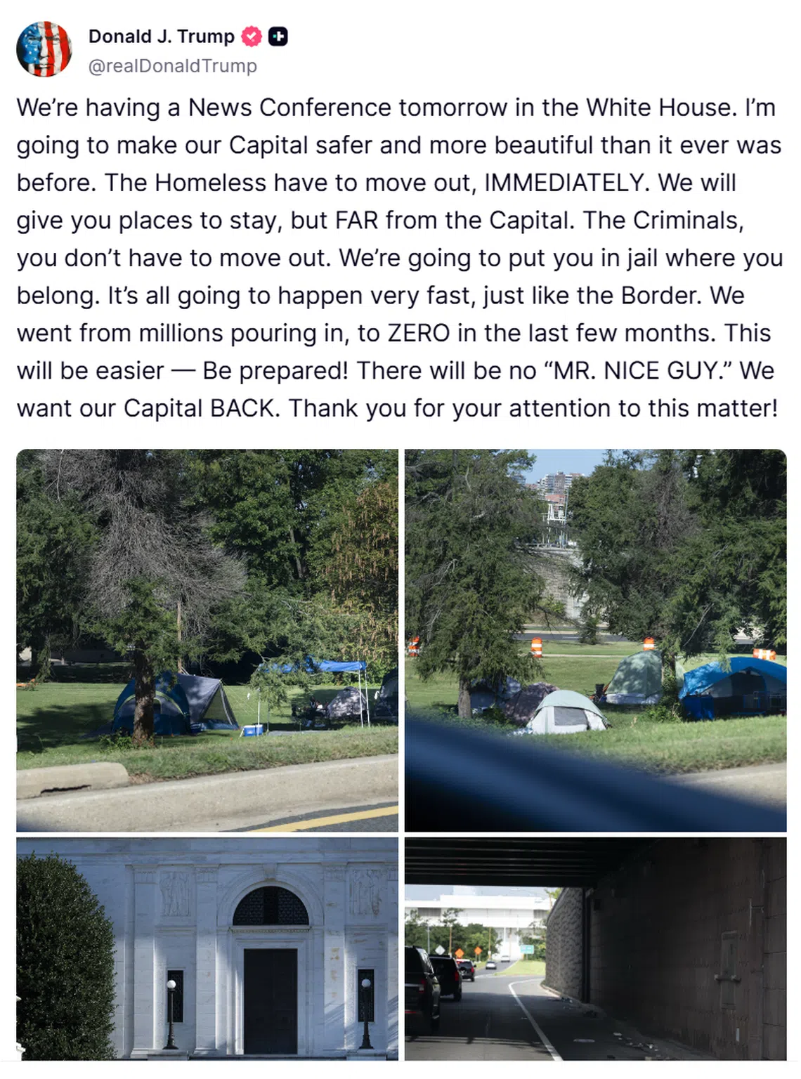 “I’m going to make our capital safer and more beautiful than it ever was before,” he posted on his Truth Social platform on Aug 10.