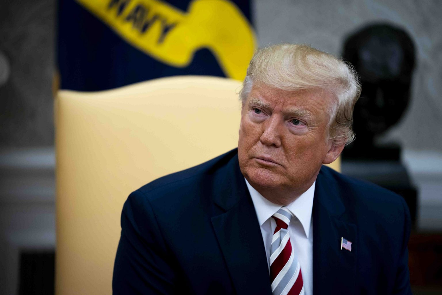 Trump during a meeting with the president of Romania in the Oval Office of the White House.