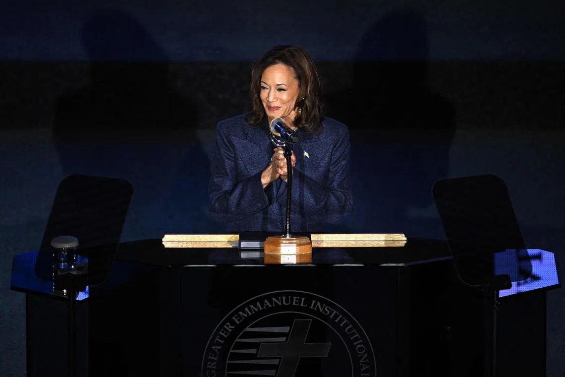 US Vice-President Kamala Harris delivering remarks at a church service at Greater Emmanuel Institutional Church of God in Christ in Detroit, Michigan, on Nov 3.
