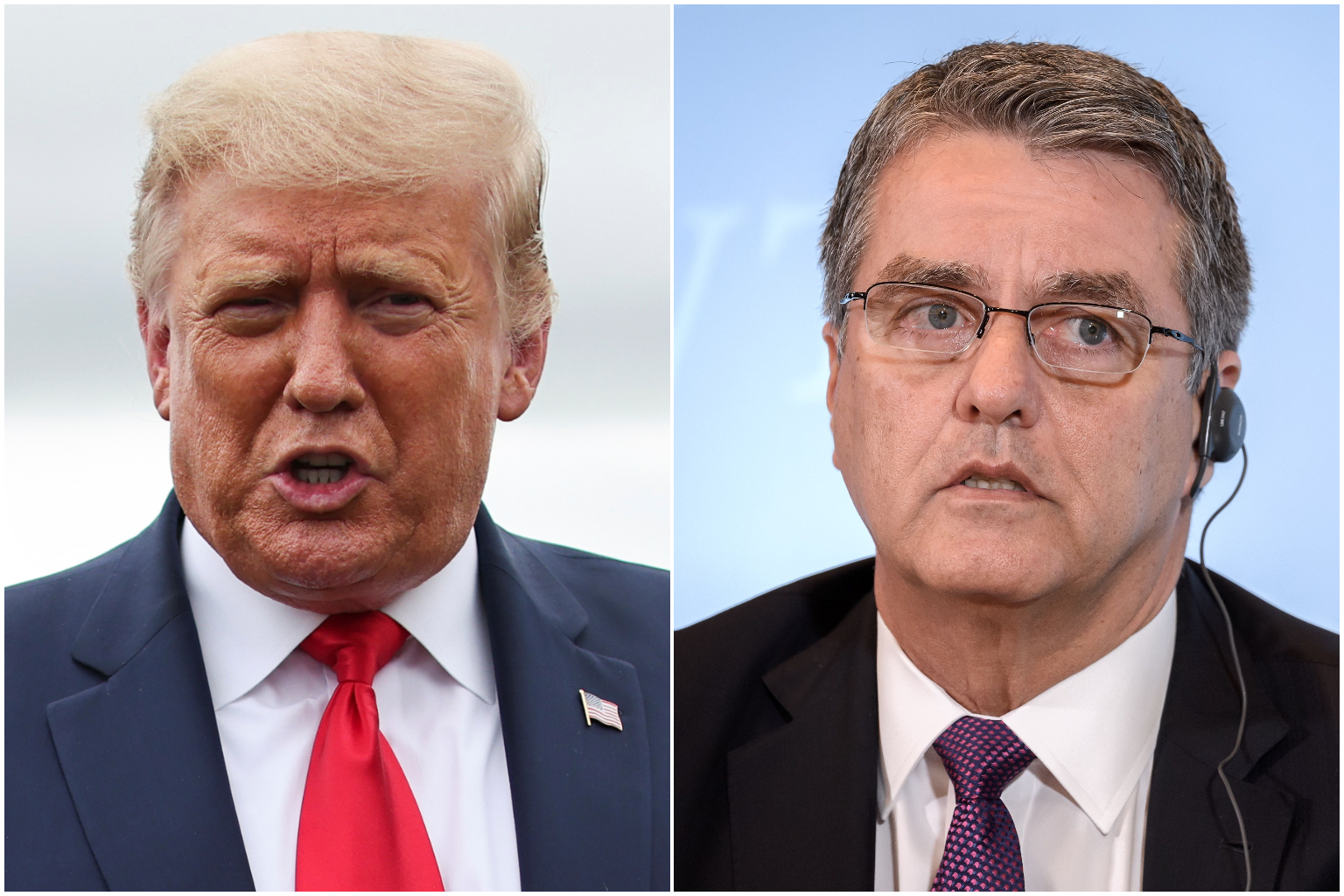 US President Donald Trump (left) demanded that then-WTO chief Roberto Azevedo designate the US a "developing nation" to get more favourable terms.