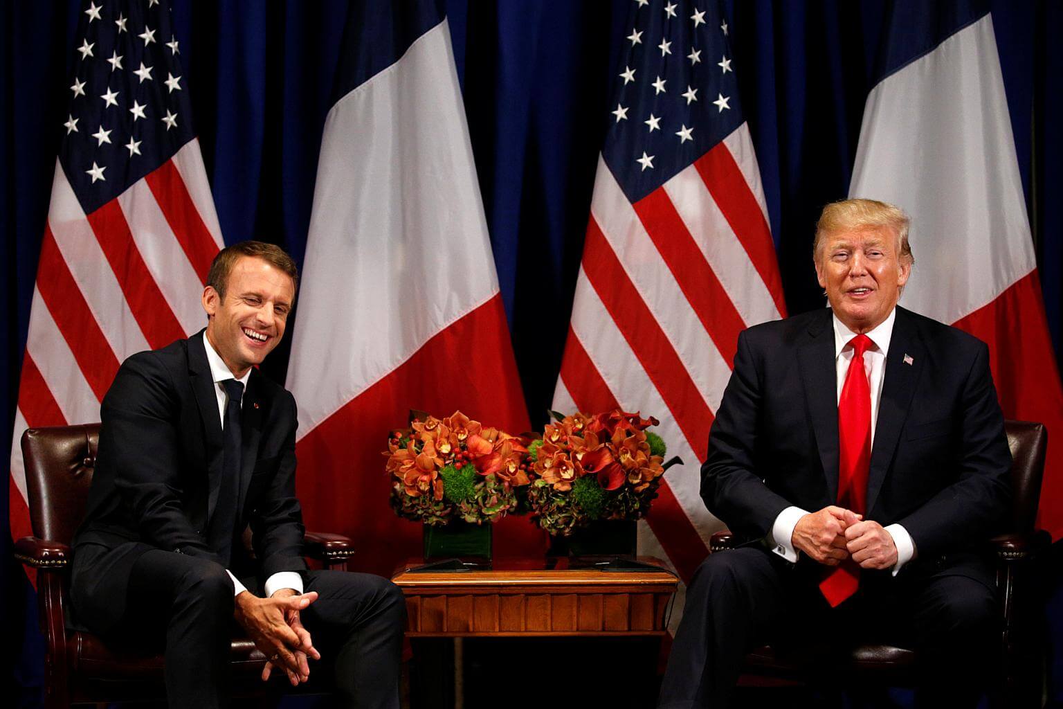 US President Donald Trump meeting with French President Emmanuel Macron in New York on Sept 18, 2017.