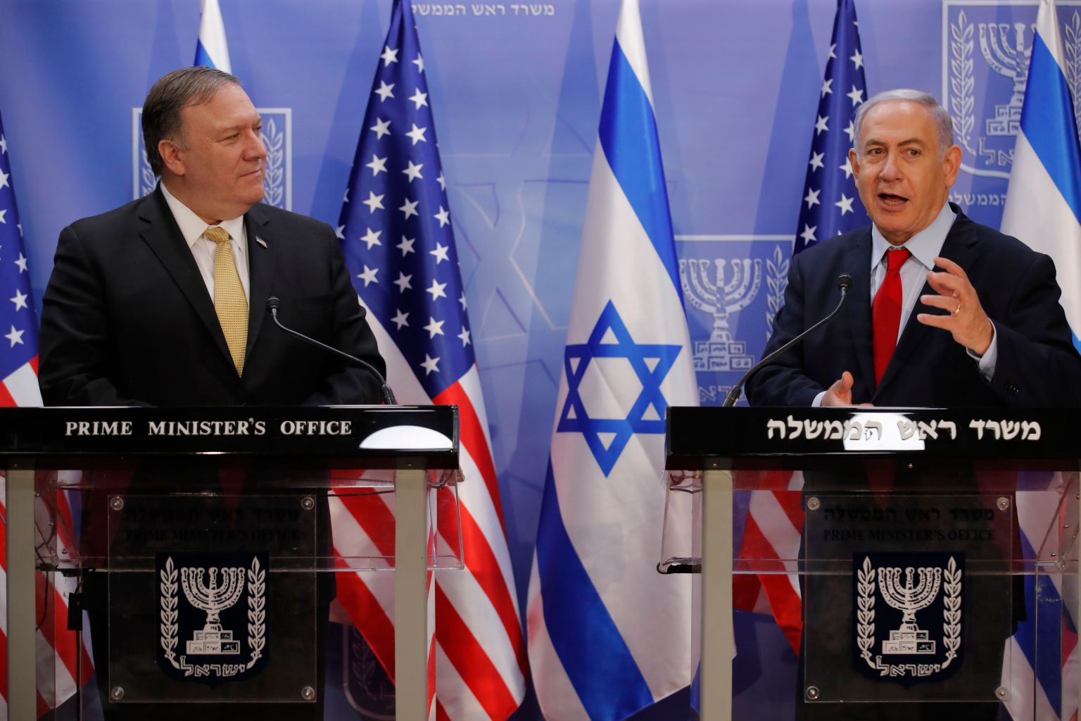 Pompeo (left) and Netanyahu deliver a joint statement during their Jerusalem meeting.