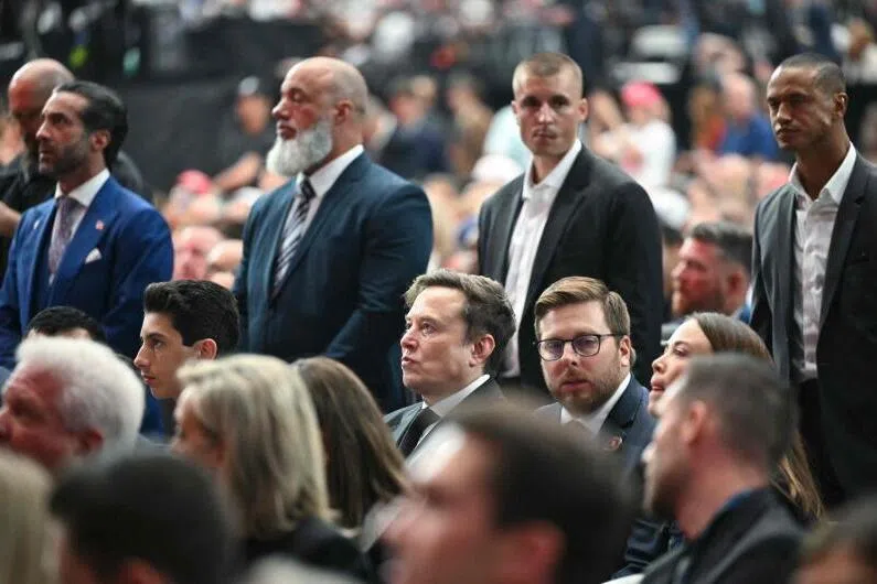 At the event, Mr Trump was seen sitting beside billionaire backer Elon Musk, whose acrimonious departure from the White House
