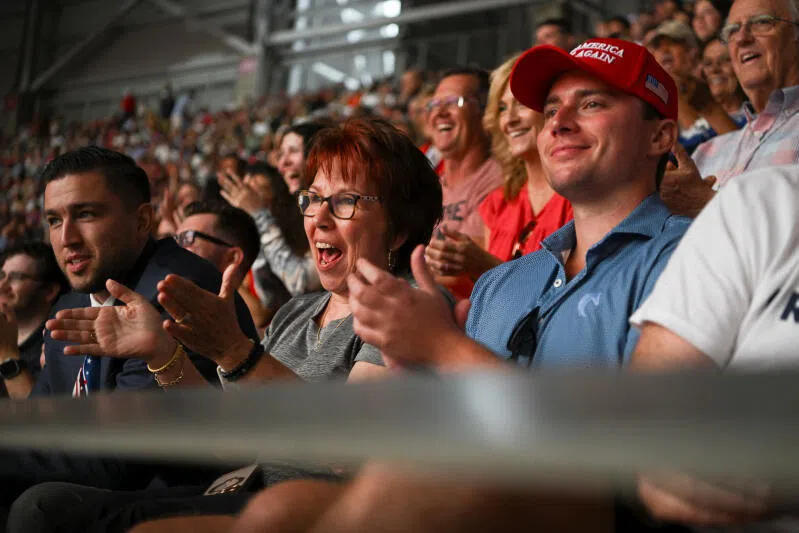 “For example, I think that biological men shouldn’t be in women’s sports. But I was too afraid to talk about stuff like that out loud,” Mr Schlotman said as Christian bands played on stage and the stadium steadily filled up.