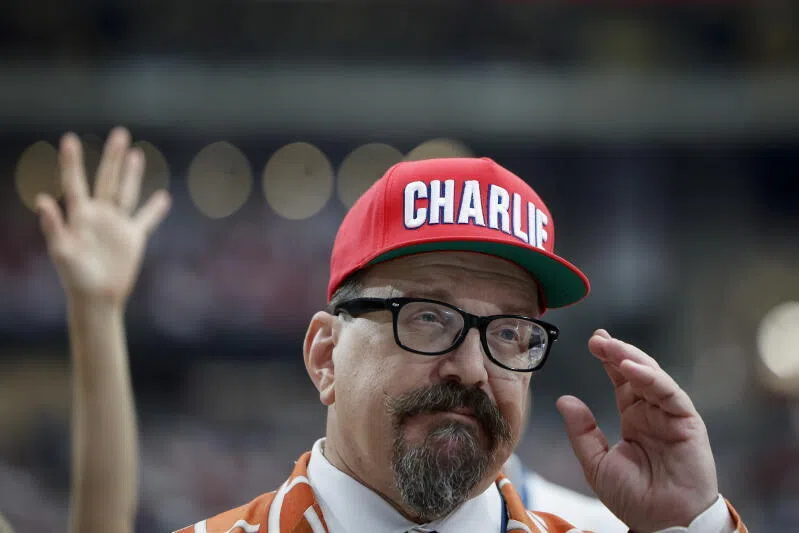 An attendee wears a Charlie hat ahead of the memorial service at State Farm Stadium in Glendale, Arizona, USA, on Sept 21.