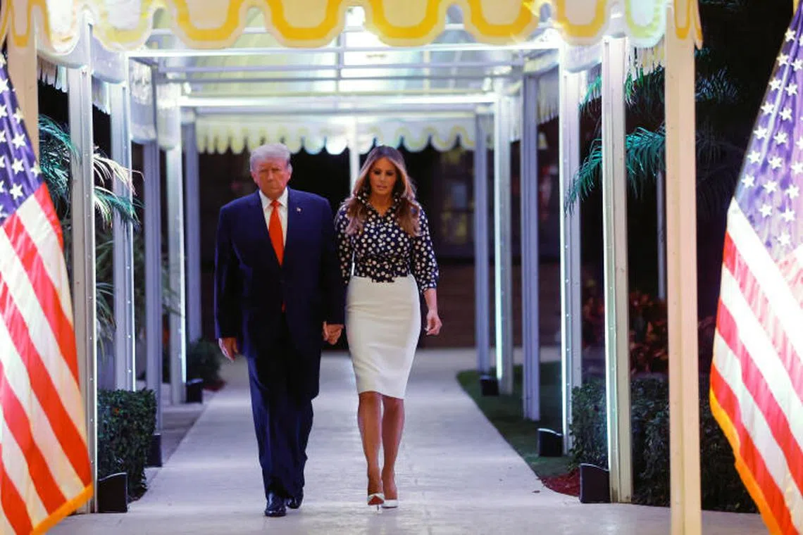 Former US president Donald Trump arrives with his wife, Melania Trump, at his Mar-a-Lago estate in Palm Beach, Florida, on Nov 15, 2022.