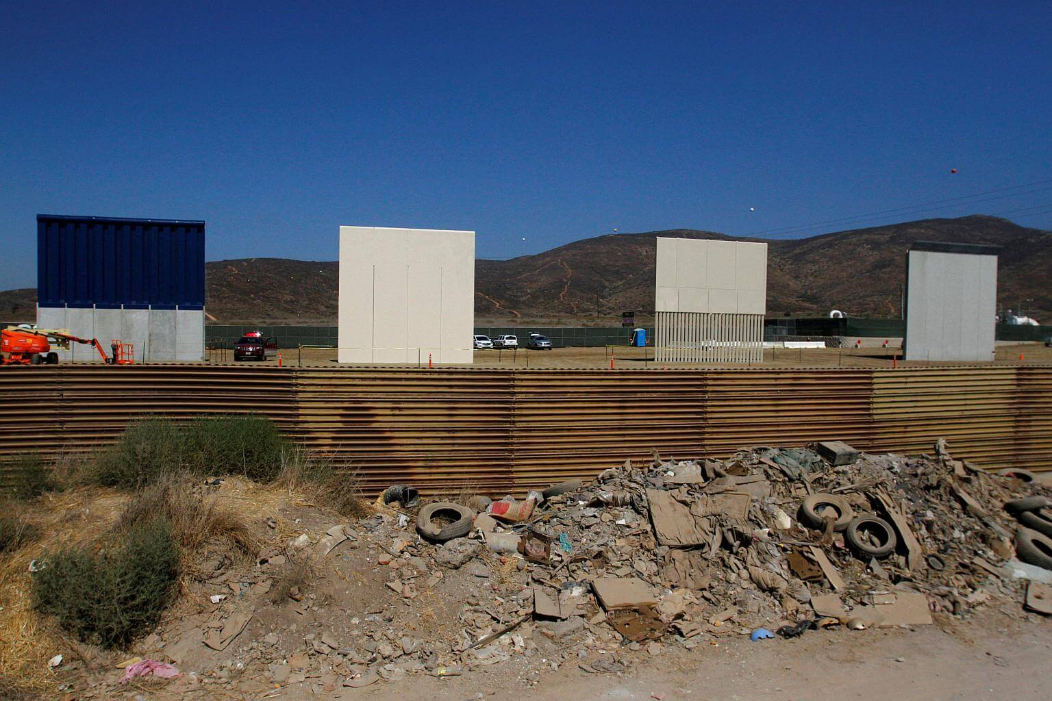 Prototypes for US President Donald Trump's border wall with Mexico are seen behind the current border fence.