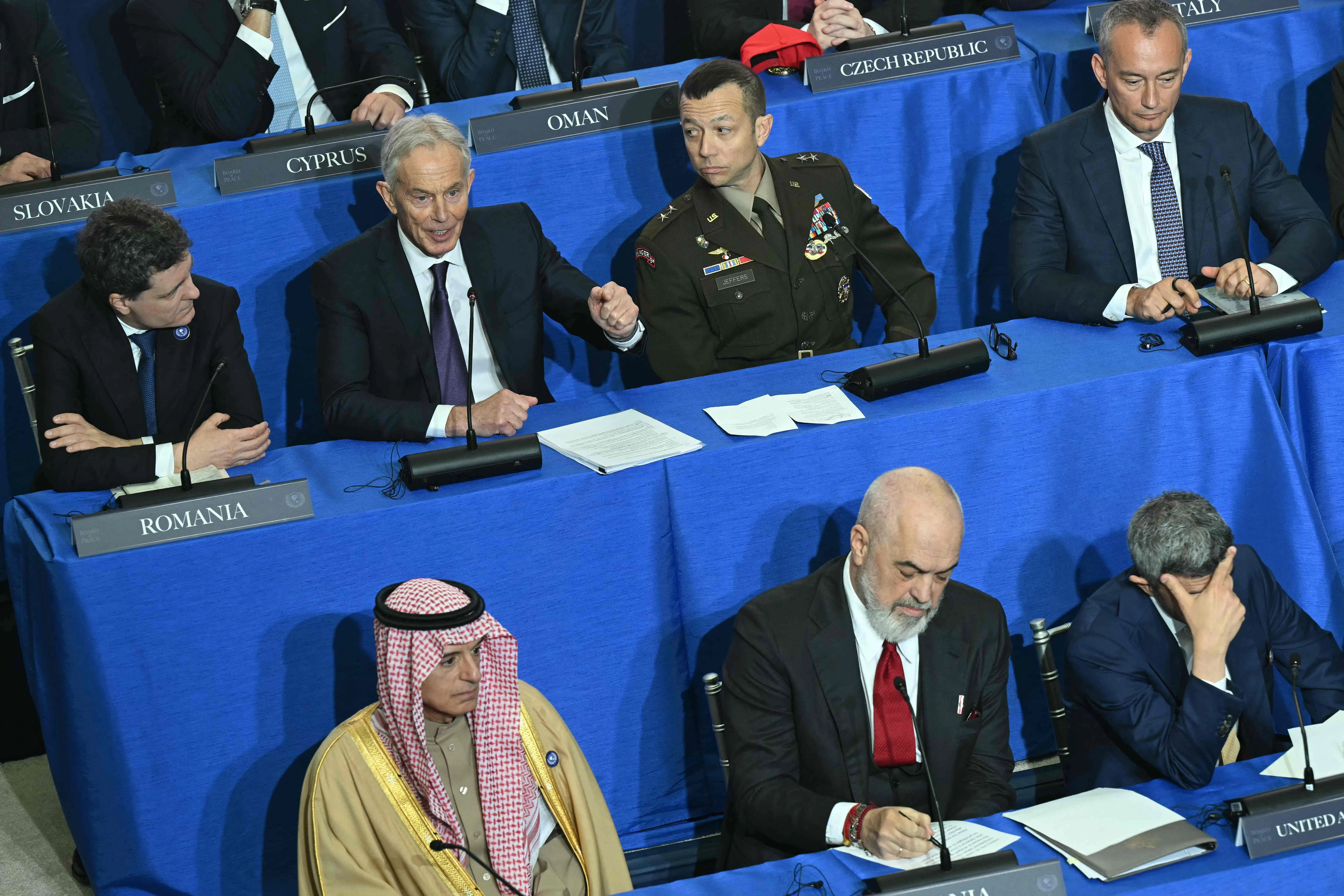 Former British prime minister Tony Blair speaking during the inaugural meeting of the Board of Peace, hosted by US President Donald Trump.