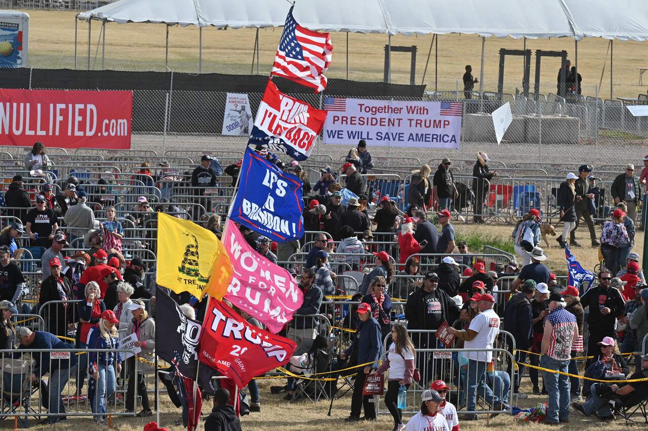 <p>Supporters gather ahead of a rally by former US President Donald Trump on January 15, 2022, at the Canyon Moon Ranch festival grounds in Florence, Arizona, southeast of Phoenix. (Photo by Robyn Beck / AFP)</p>