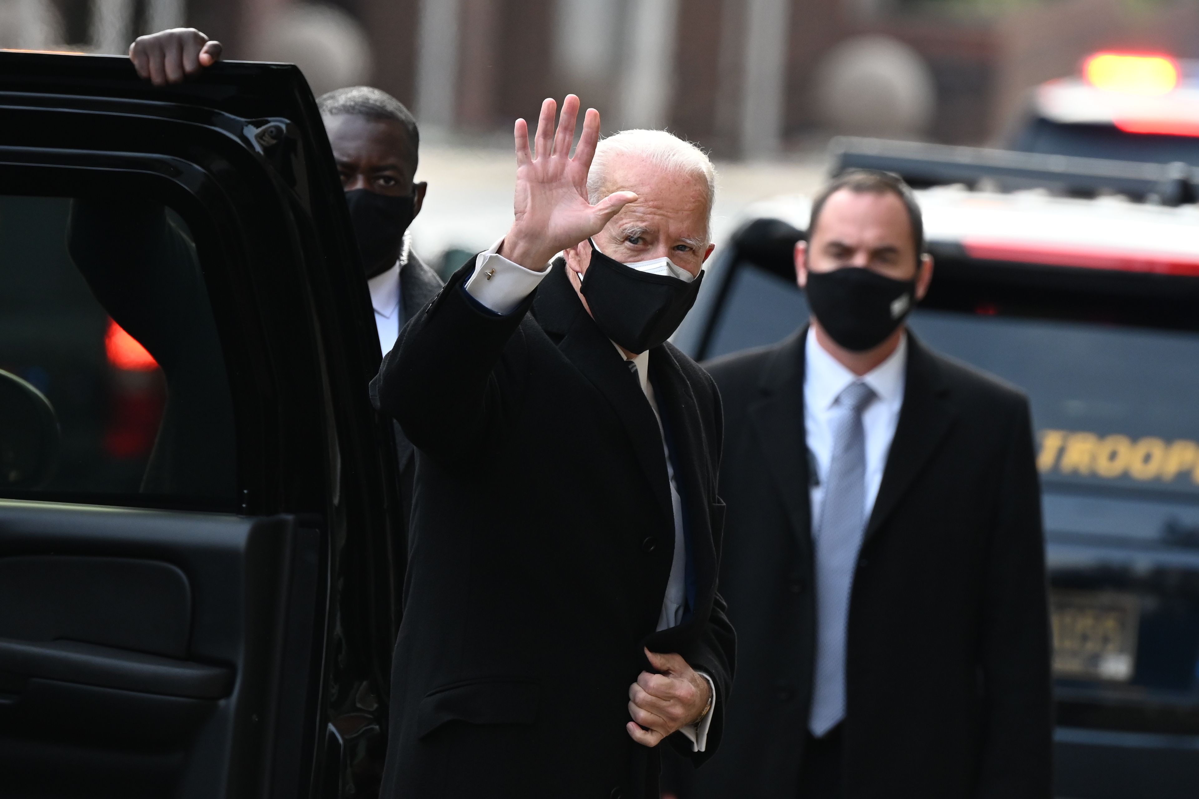 US President-elect Joe Biden arrives at The Queen in Wilmington, Delaware on Dec 9, 2020.