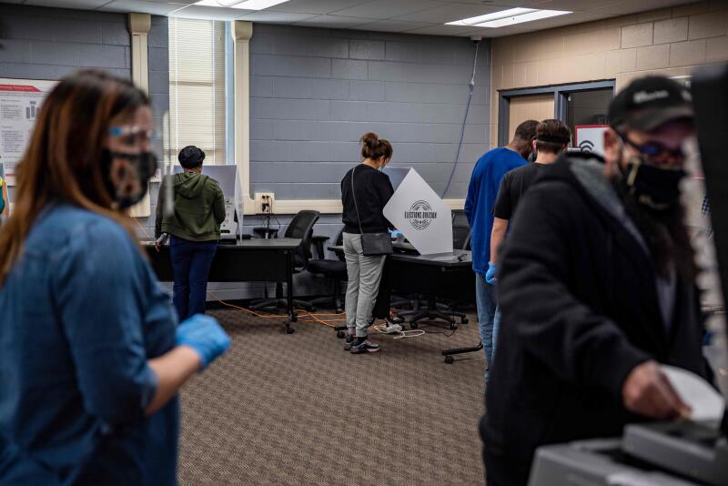 Voters cast their ballots at a polling location on election day on Nov 3, 2020 in Manor, Texas.