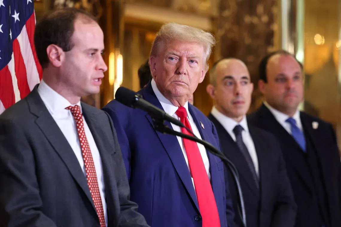 Attorney Will Scharf speaks as former US president and Republican presidential candidate Donald Trump (centre) looks on, during a press conference at Trump Tower in New York City, on Sept 6.