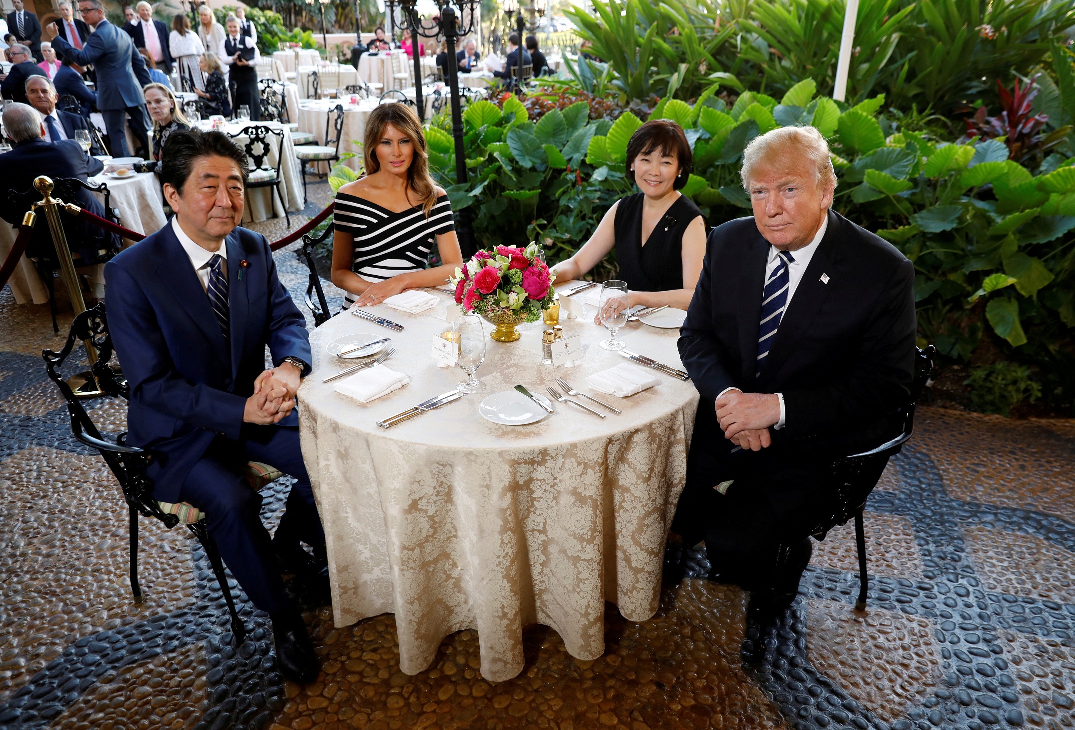 A 2018 photo shows Trump and first lady Melania Trump hosting Japan's prime minister Shinzo Abe and his wife Akie at Mar-a-Lago.