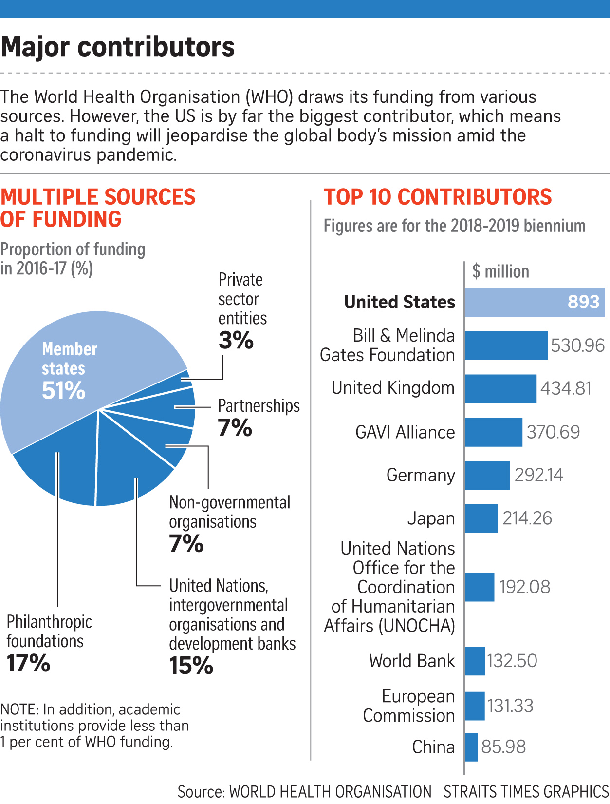 It contributed US$893 million (S$1.27 billion), or about 15 per cent, to the global health agency's current two-year budget.