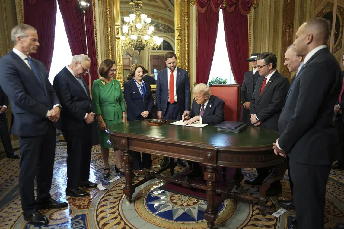 US President Donald Trump during a signing ceremony after his inauguration as the 47th president at the Capitol in Washington.