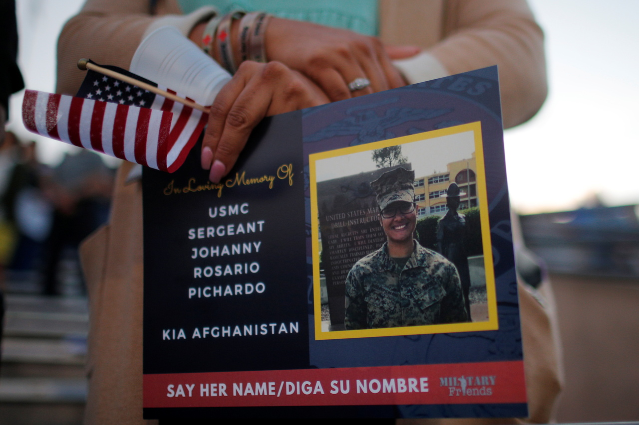 One of the women, who, like the others, declined to give her name, cradled a framed picture of Sgt Rosario in a formal gown.