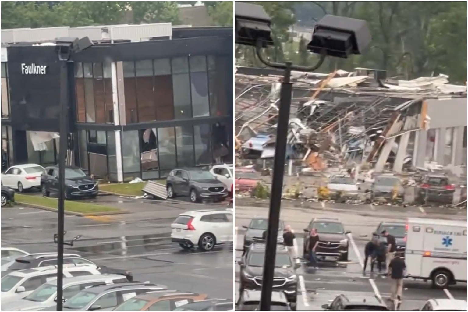 One of the twisters hit in Bensalem, Pennsylvania, collapsing the roof of a car dealership building.