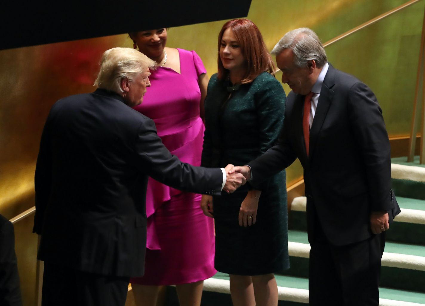 Guterres (right) greeting US President Donald Trump after Trump's speech at the UN on Sept 25, 2018.