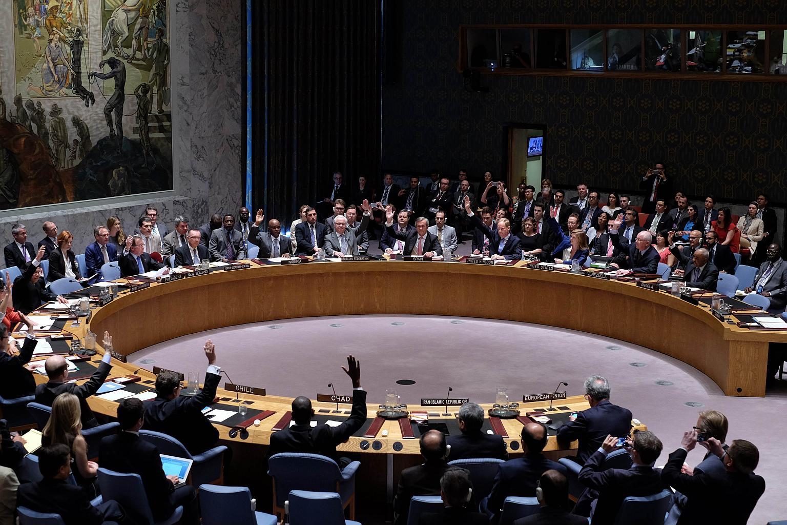 United Nations Security Council members vote on the Iran resolution at the UN headquarters in New York on July 20, 2015.