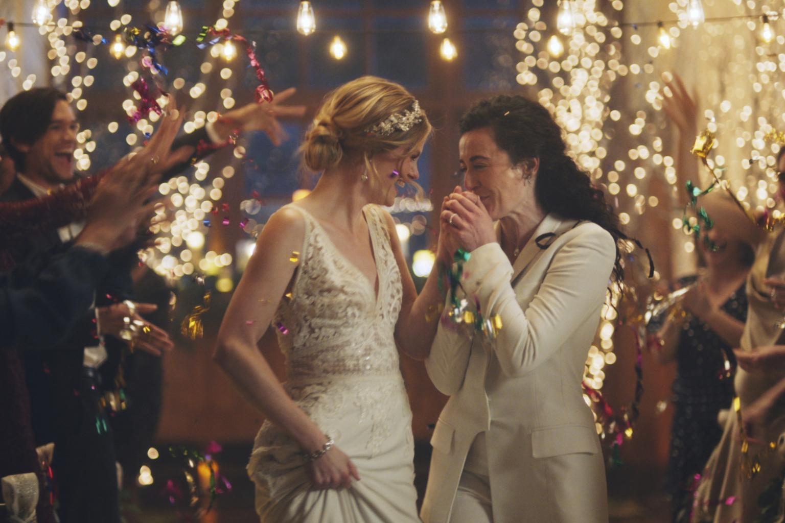 In one of the pulled ads, two brides stand at the altar and wonder aloud whether their wedding would be going more smoothly if they had used a wedding planning site like Zola. The lighthearted ad ends with the two brides sharing a quick kiss on the altar.